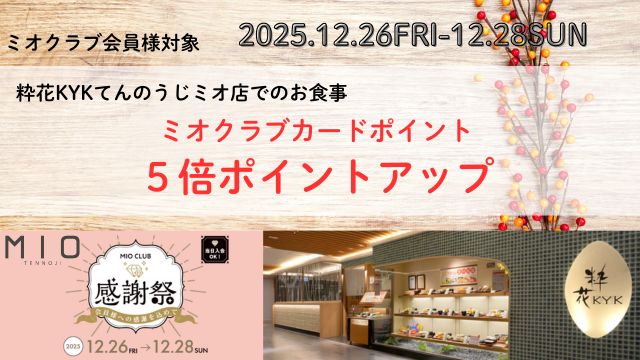 12月26日(金)~28日(日)は天王寺ミオにて感謝祭が開催しております。
