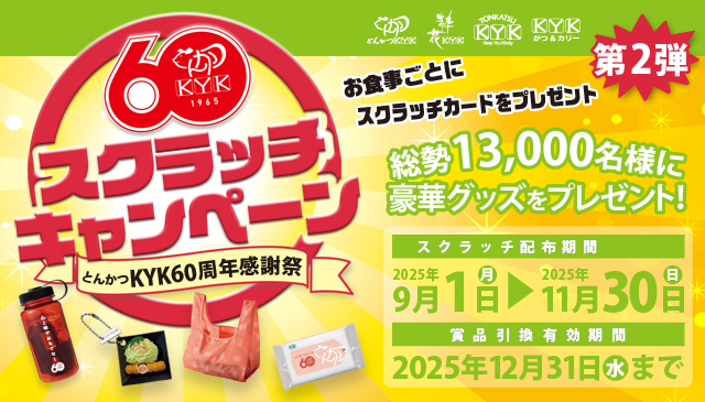 【とんかつKYK・デリカKYK】60周年スクラッチキャンペーン『第2弾』まもなく始まります!